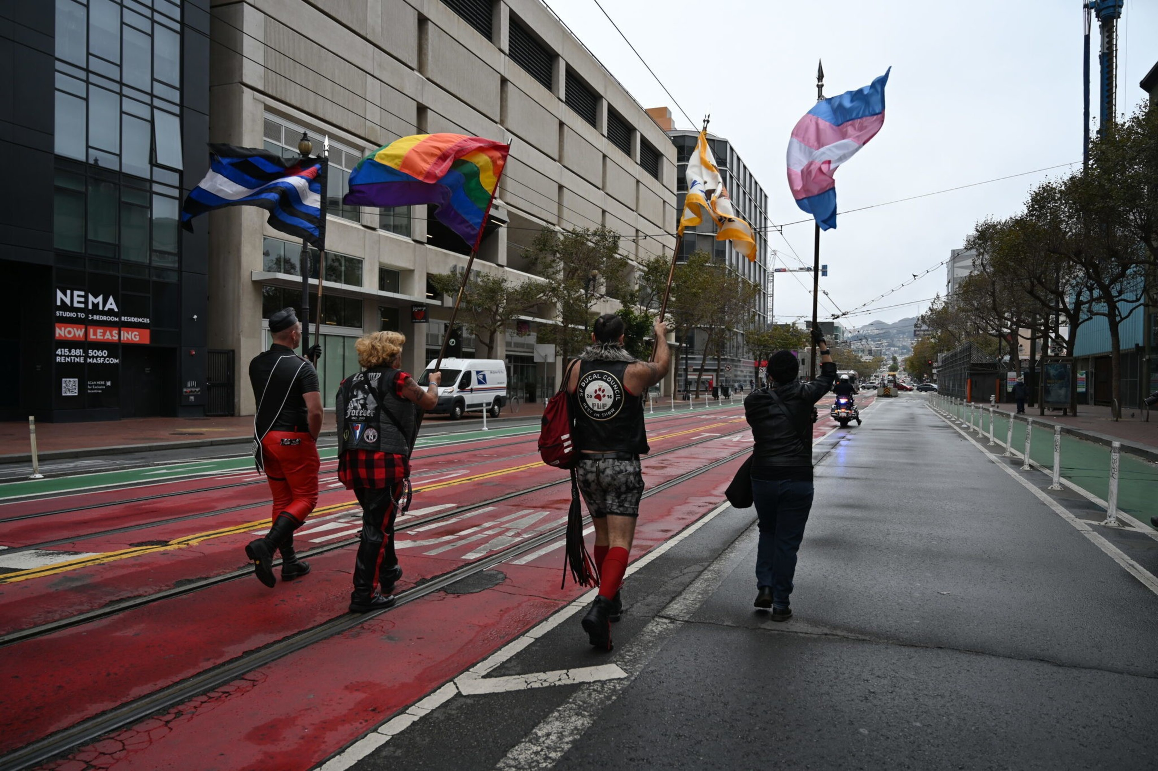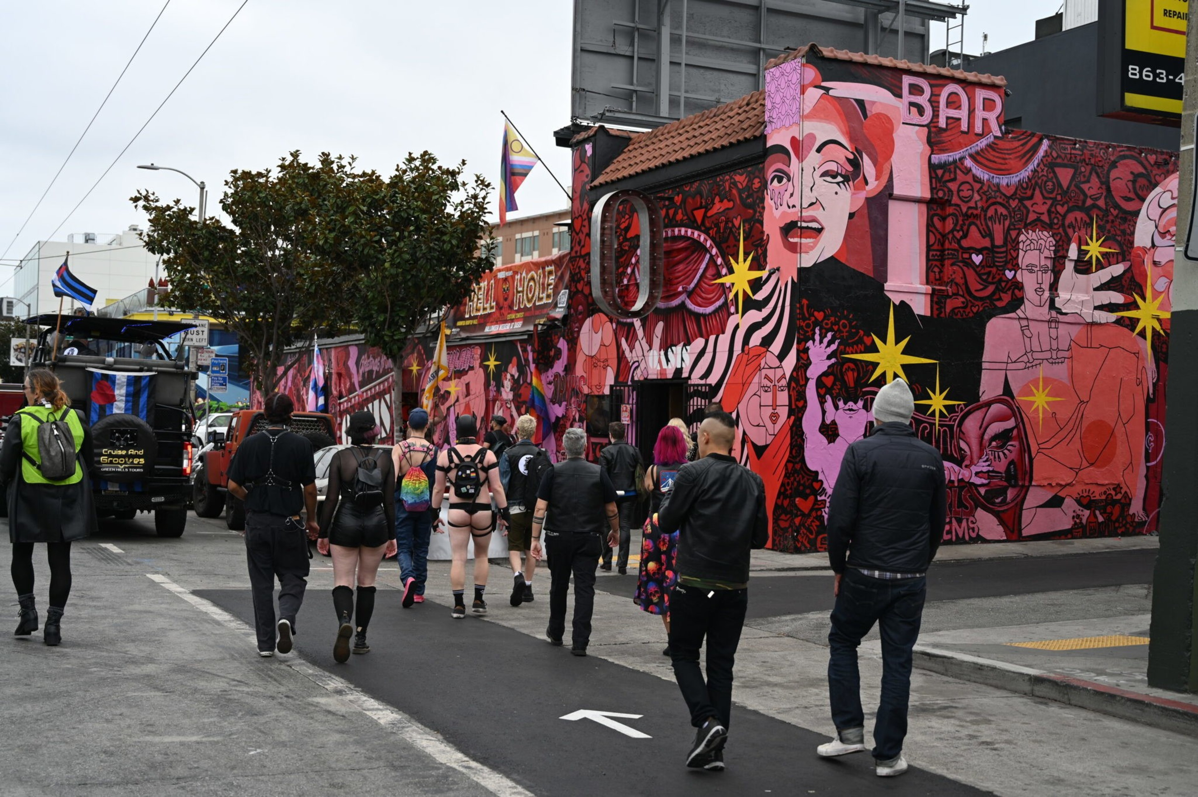 Attendees walk to Oasis for Leather Walk in San Francisco on Saturday, Oct. 15, 2022. | Samantha Laurey for The Standard | Source: Samantha Laurey for The Standard