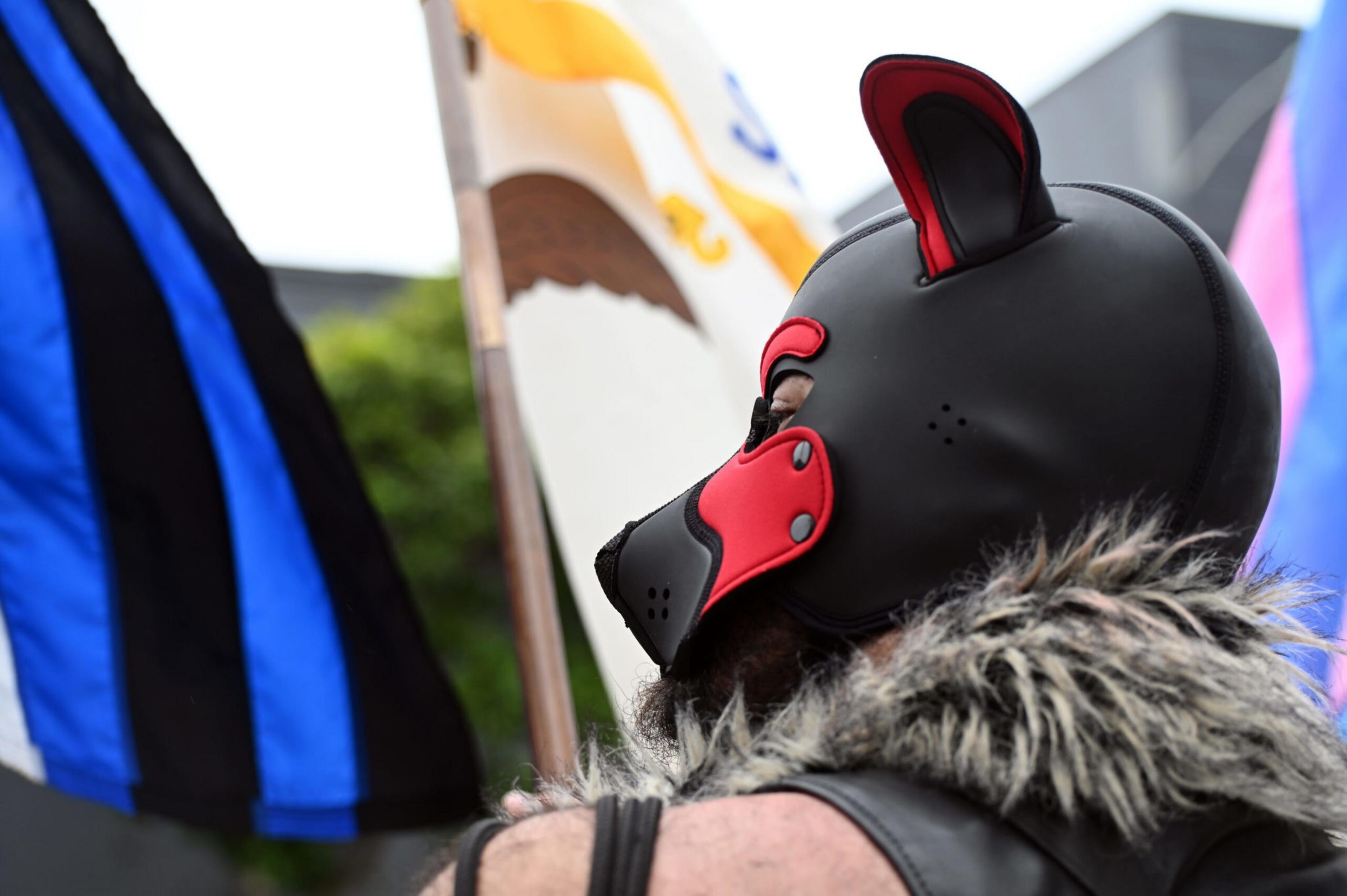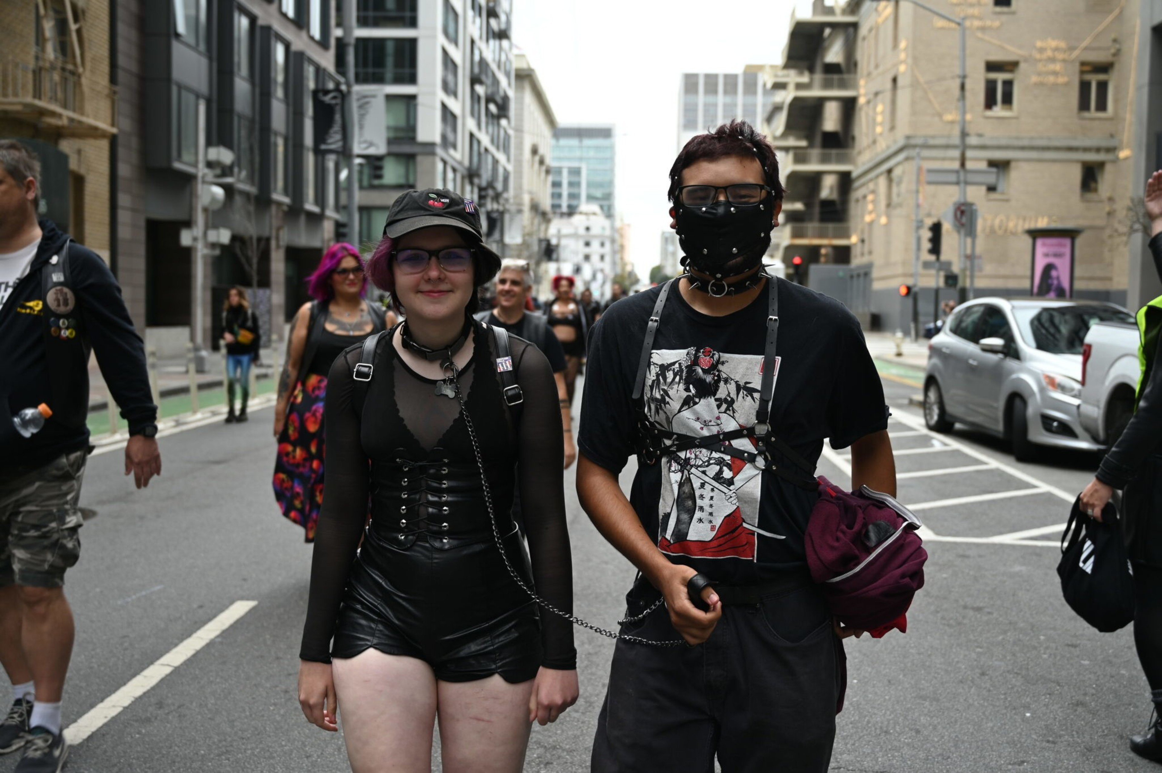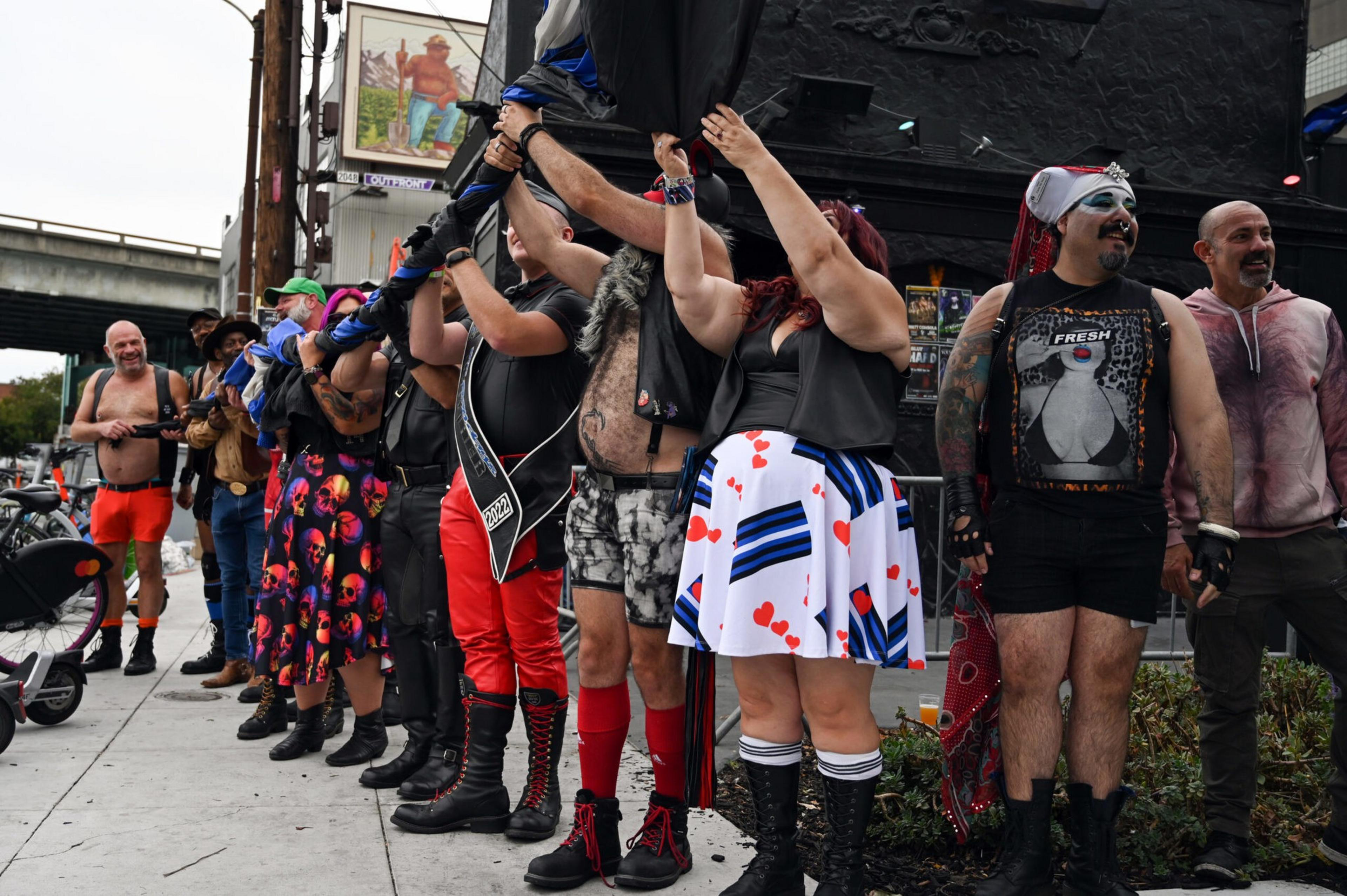 Attendees get ready to walk to the next destination for Leather Walk in San Francisco on Saturday, Oct. 15, 2022. | Samantha Laurey for The Standard | Source: Samantha Laurey for The Standard