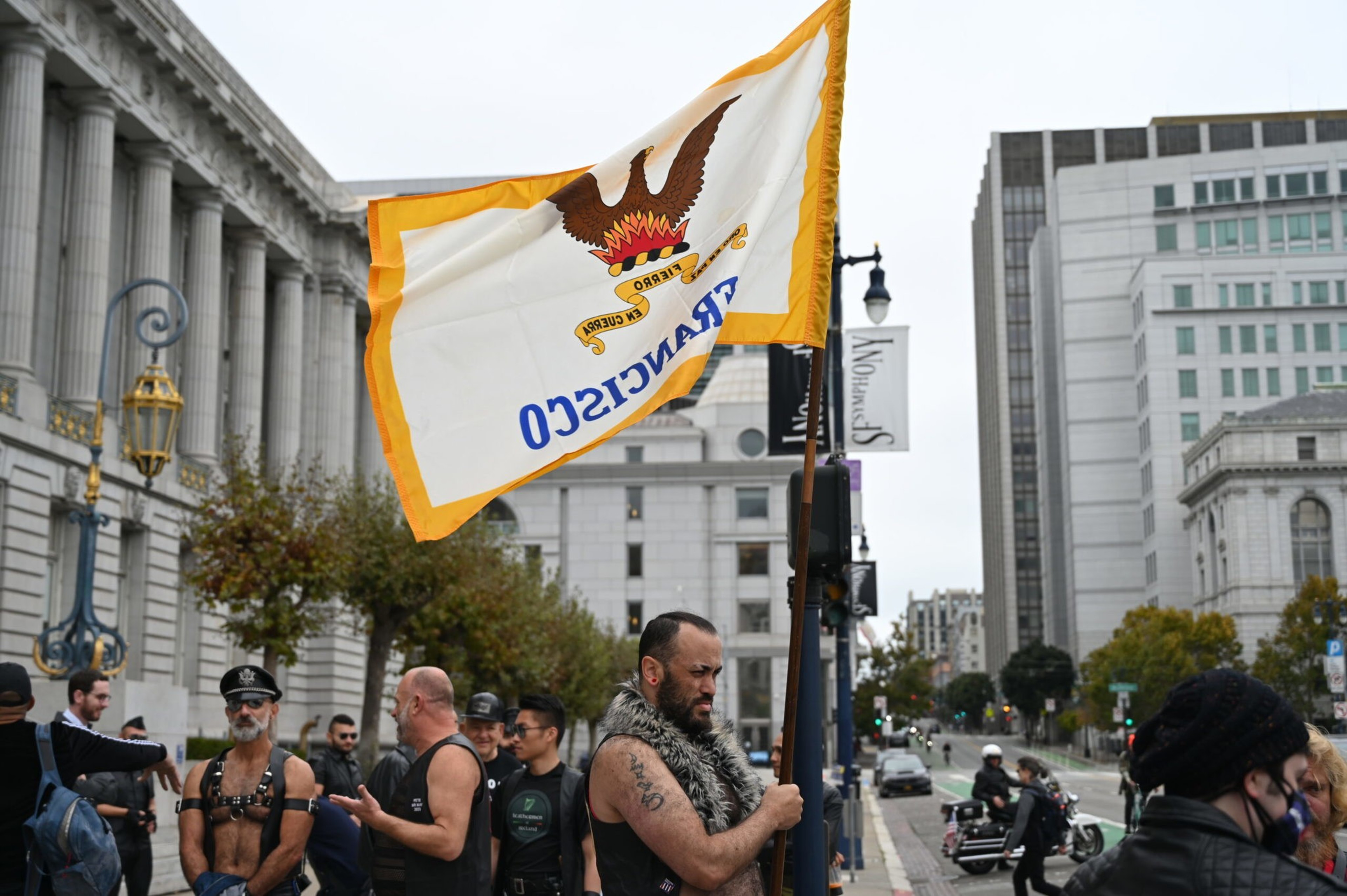 Attendees gather in front of City Hall for Leather Walk in San Francisco on Saturday, Oct. 15, 2022. | Samantha Laurey for The Standard | Source: Samantha Laurey for The Standard