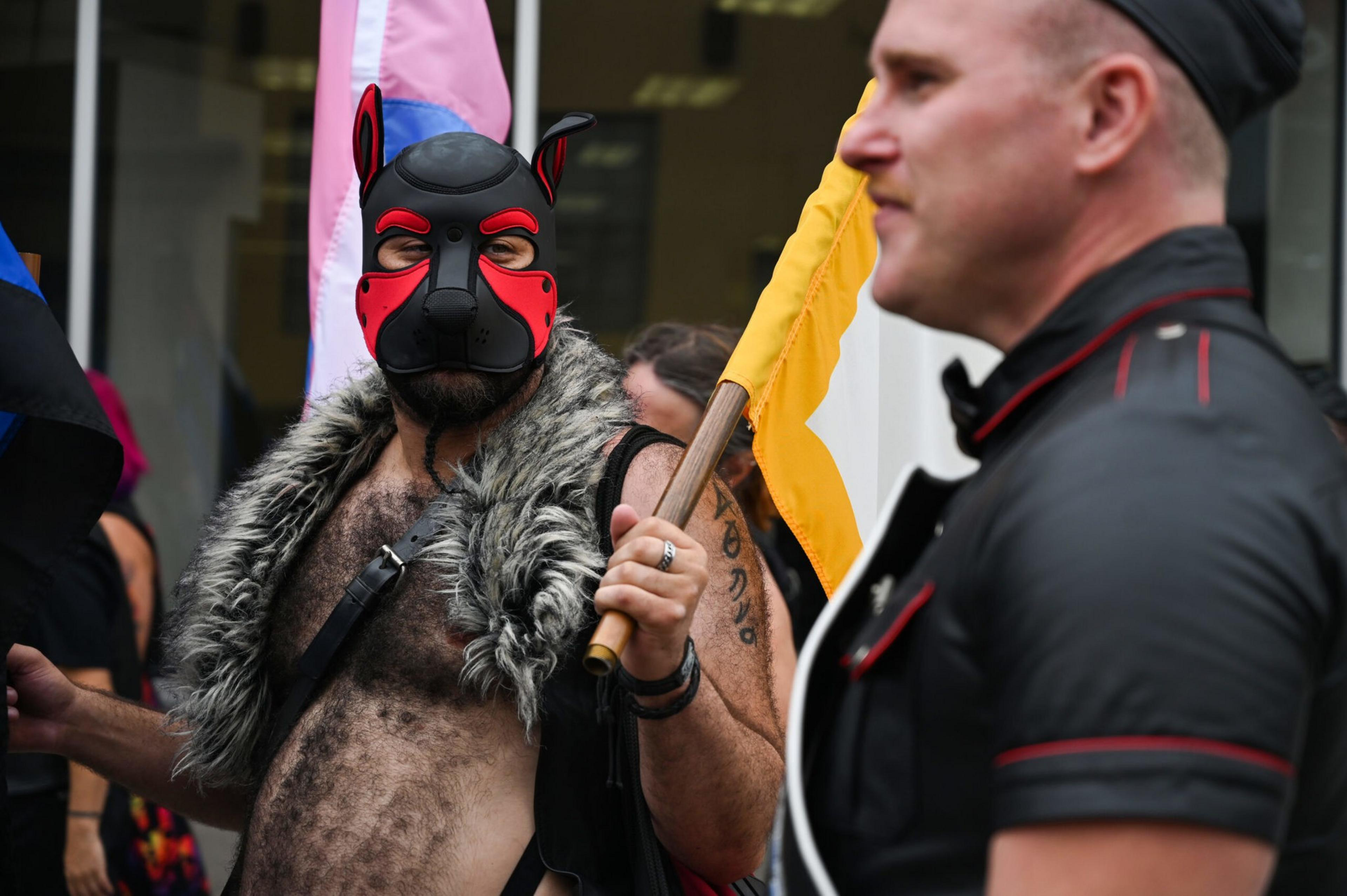 A celebration of the city’s queer BDSM scene, the march culminated in a raising of the official flag of the leather community in Eagle Plaza.