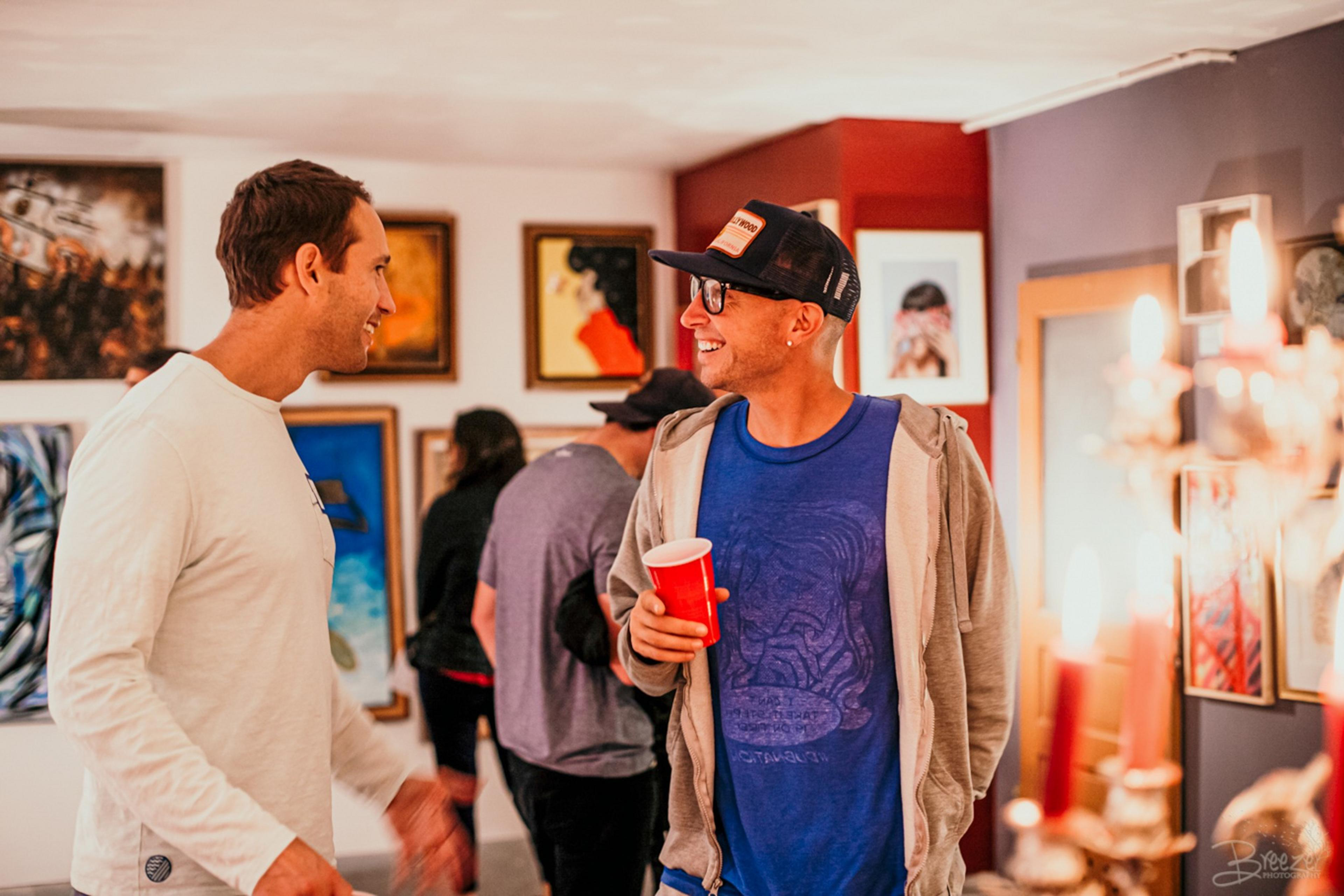 Two men talk at an Oakland Art Library event. | Brieana Breeze Photography
