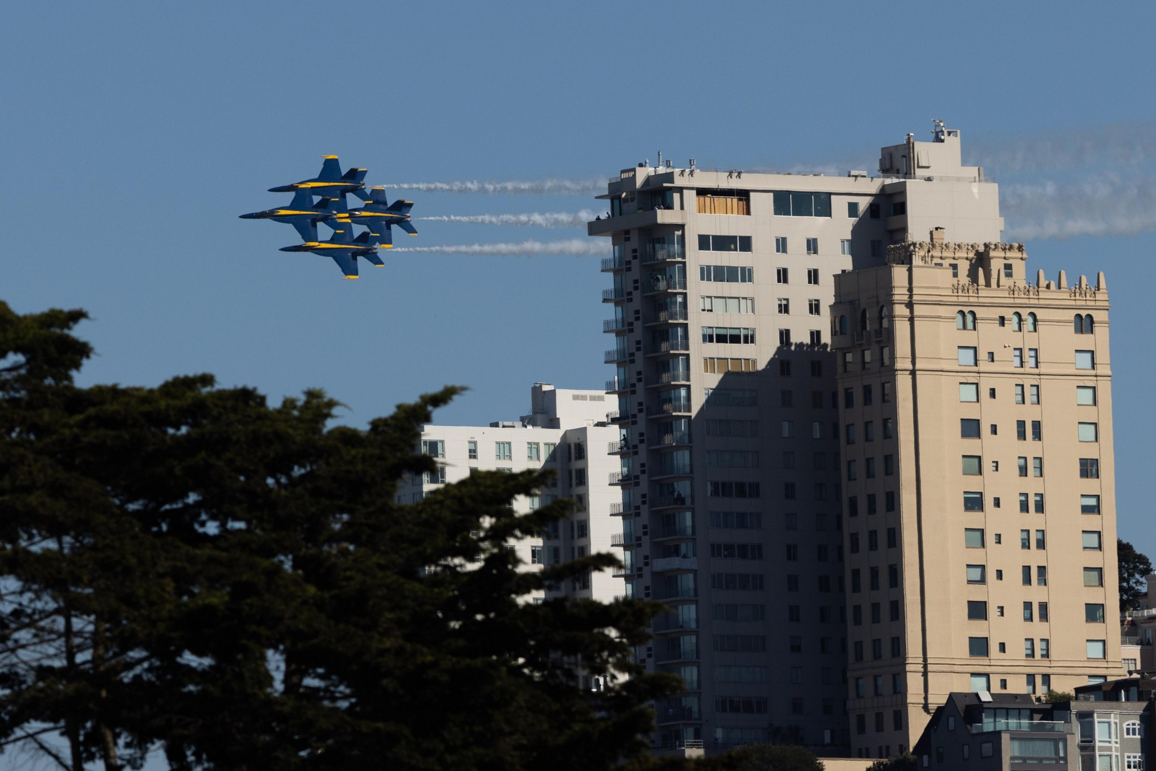 A woman died after falling from a building at a Fleet Week Blue Angels viewing party in San Francisco on Saturday, her ex-husband and friends confirmed on Tuesday.