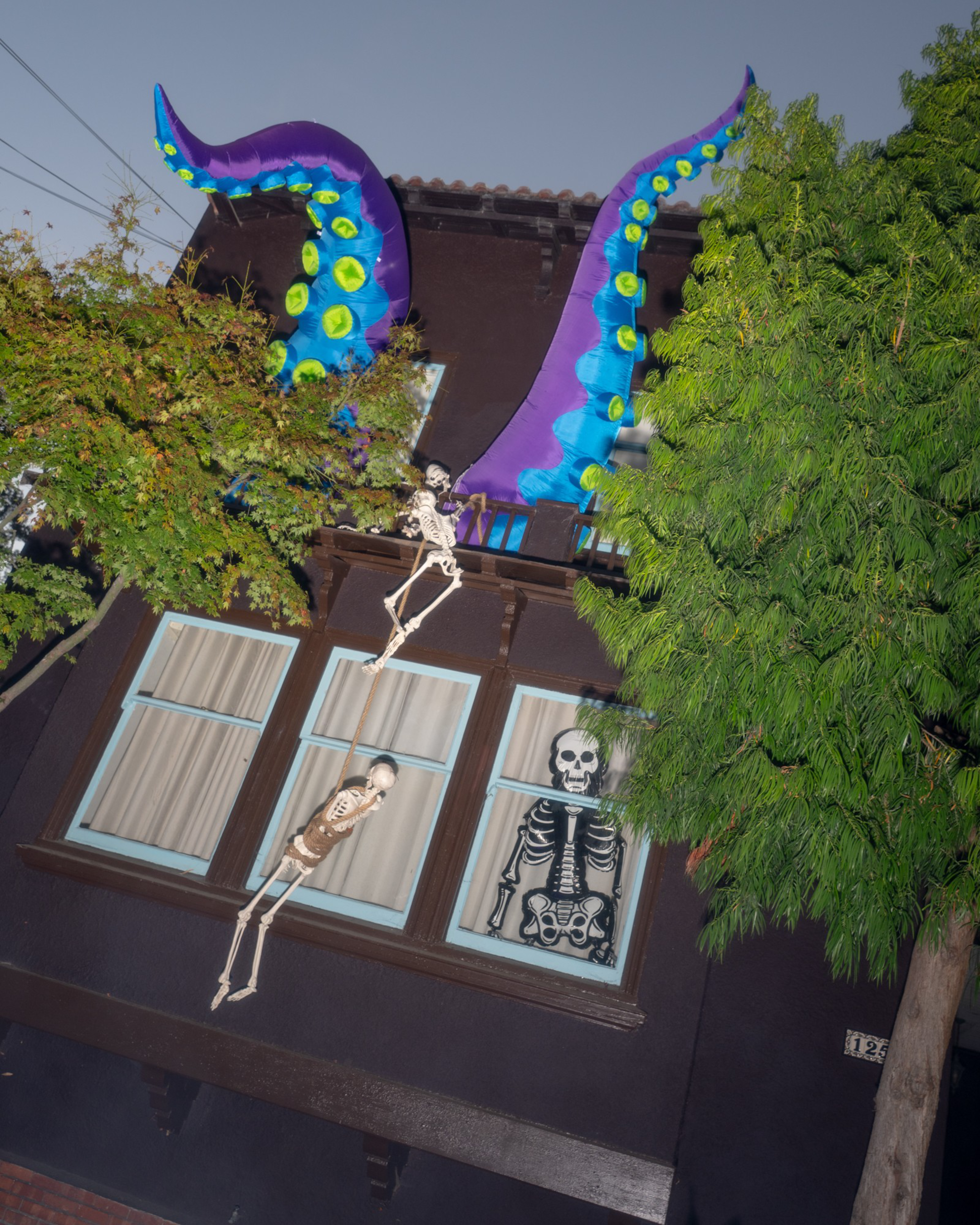 His neighbor Simon Carless, a video game consultant, is debuting some inflatable tentacles on the side of his house this year.